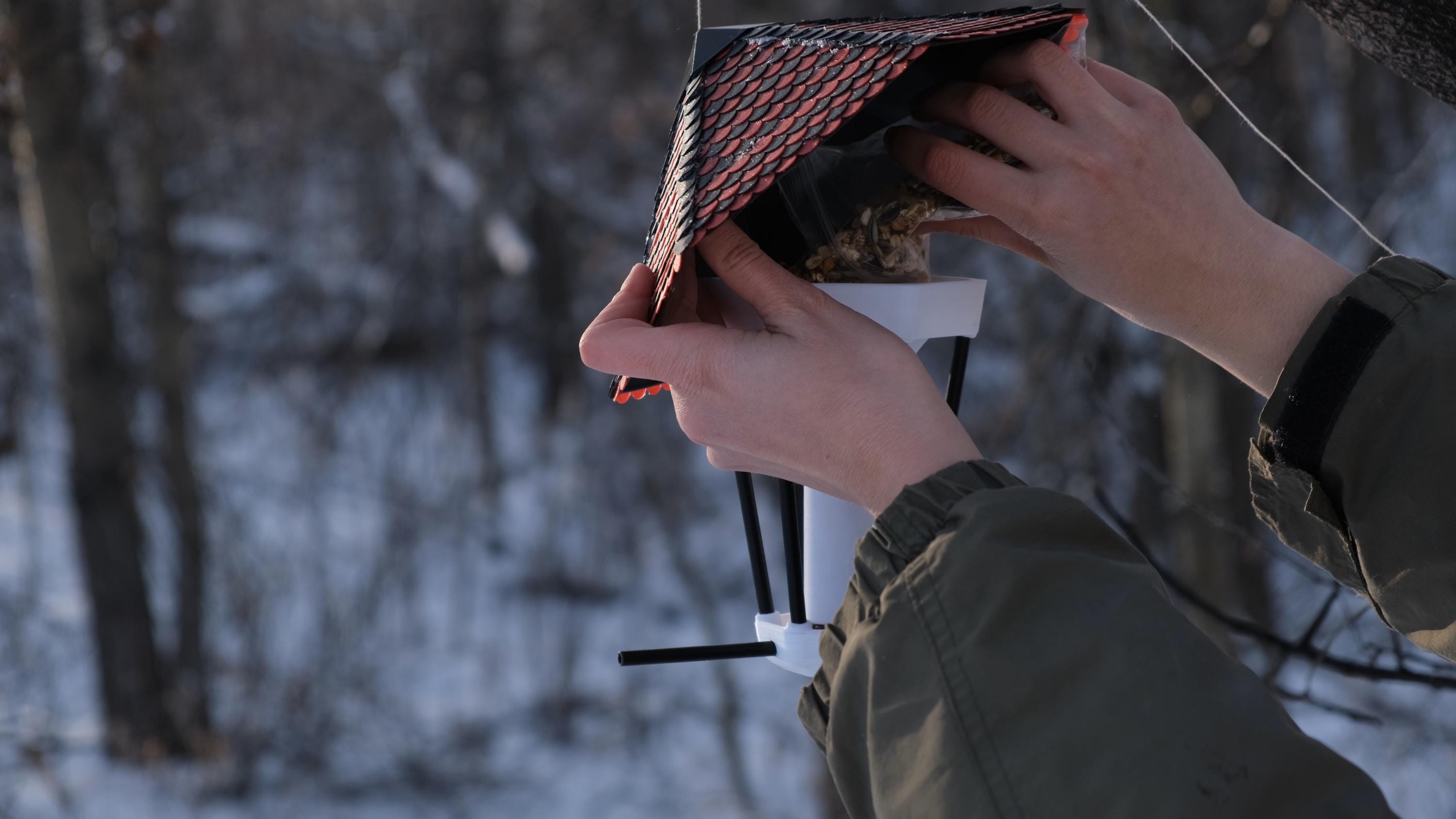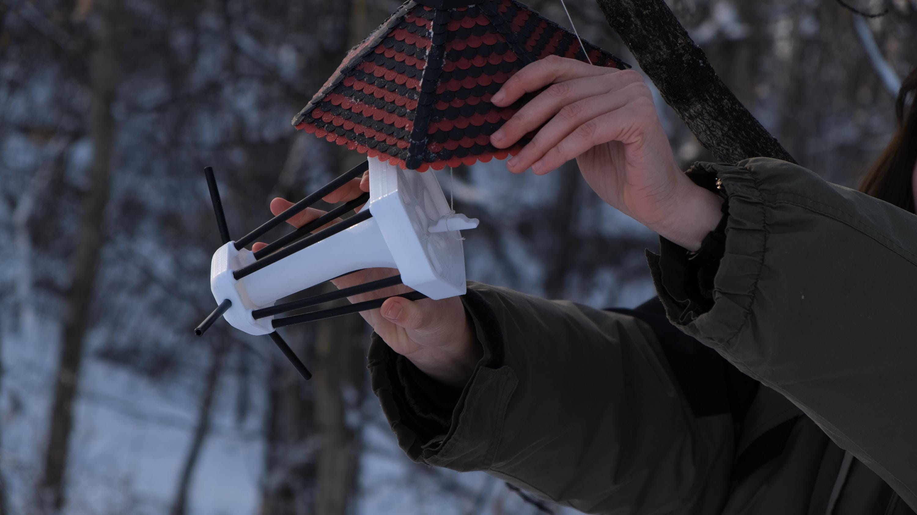 3D-Printed Bird Feeder, Decorative Scale Pattern, Outdoor Wildlife Feeding Station