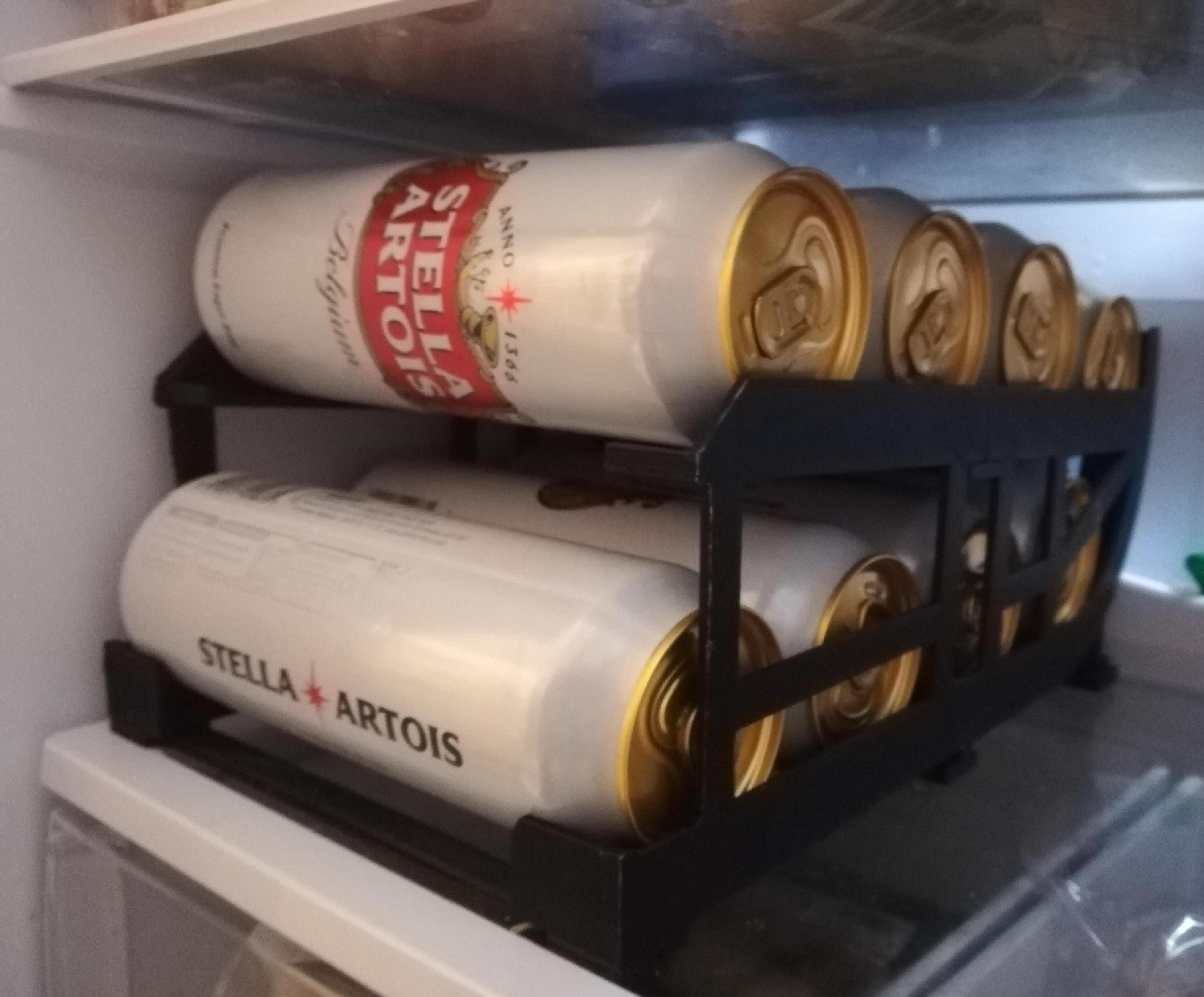 3D-Printed Can Dispenser, 8-Can Storage Rack, Refrigerator Space Saver