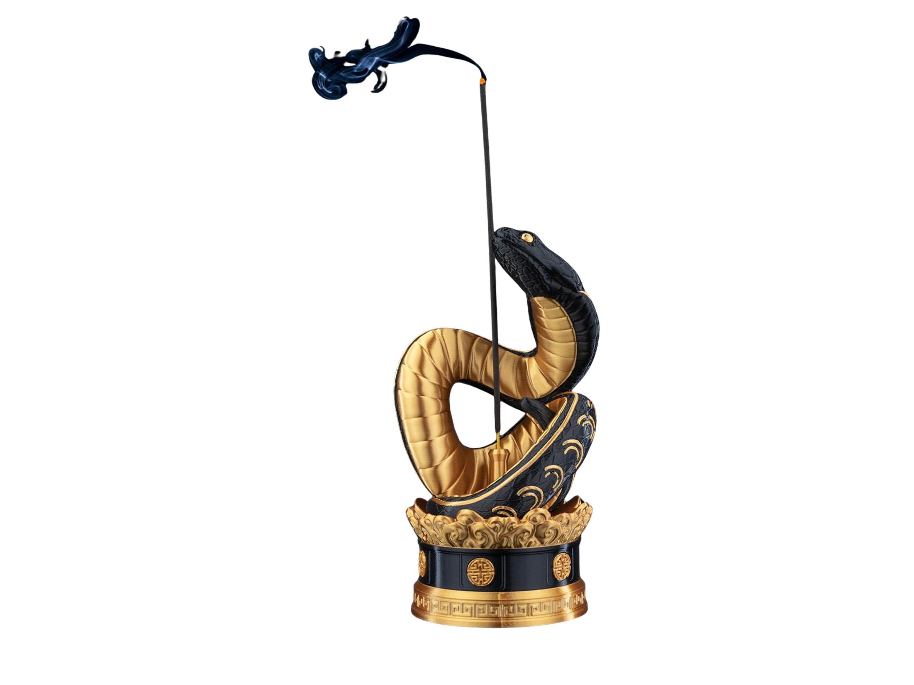 3D Printed Cobra Incense Holder – Hand-Painted Black Gold Snake Sculpture Zen Decor