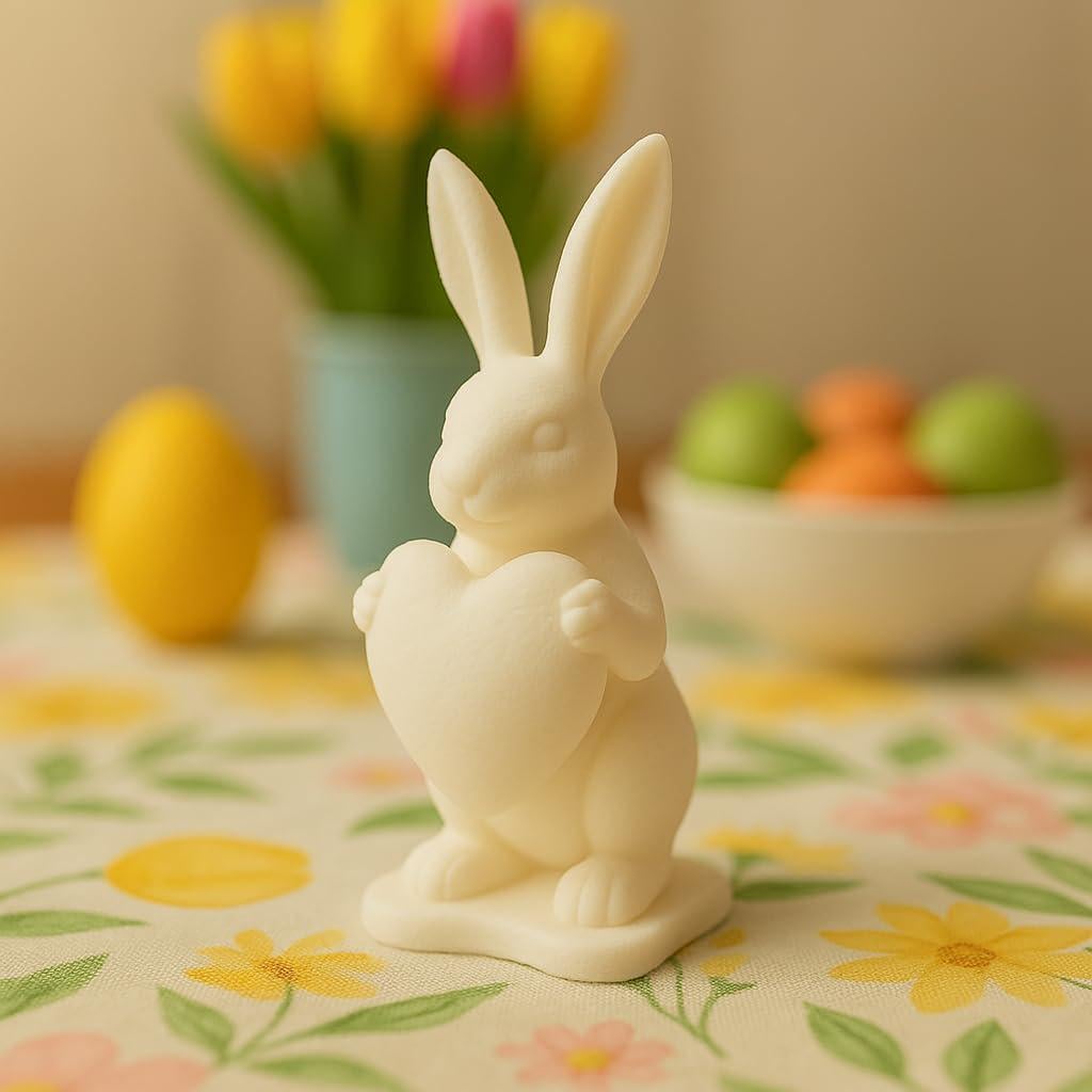 3D Printed Easter Bunny Figurine with Heart: Minimalist Spring Decor