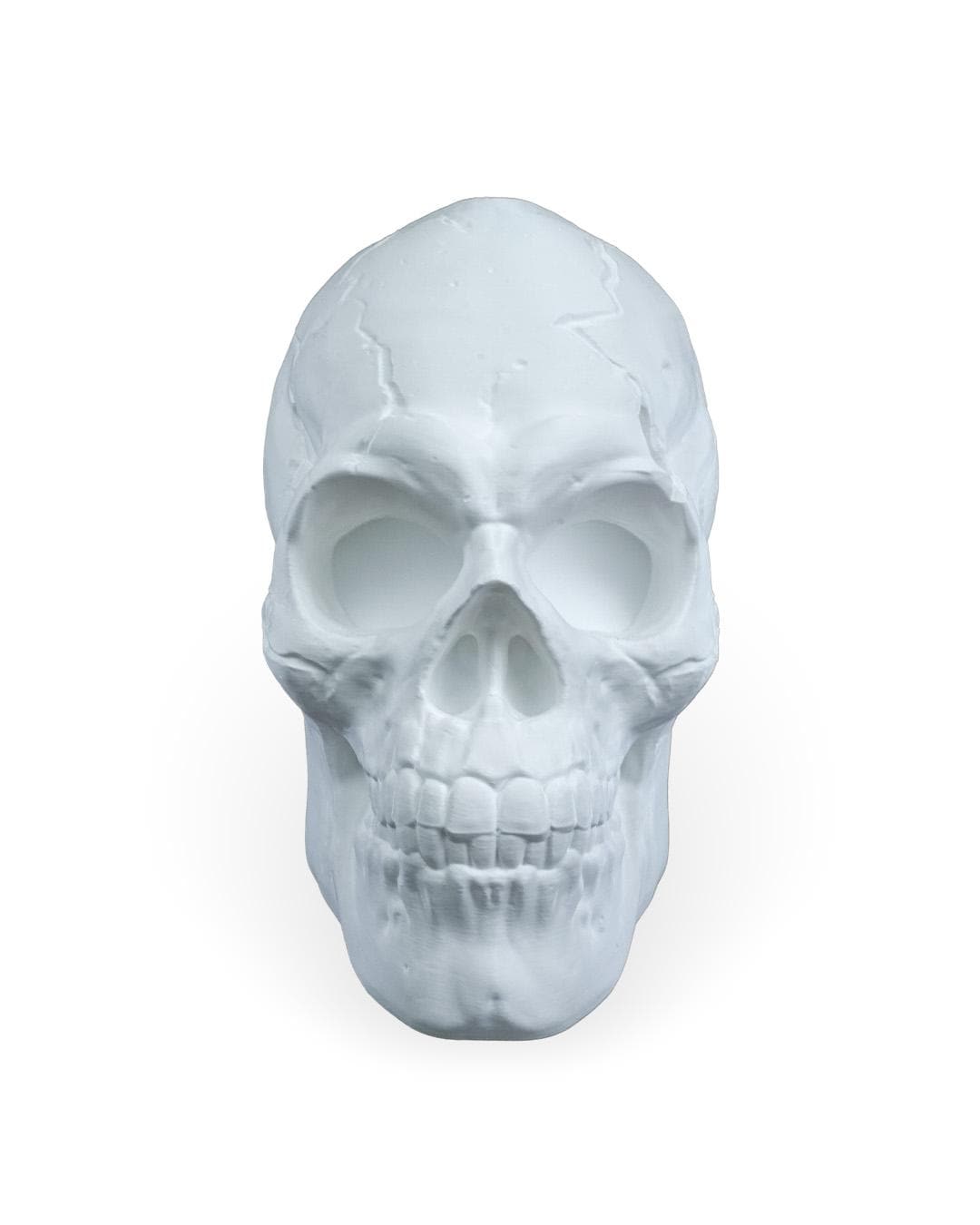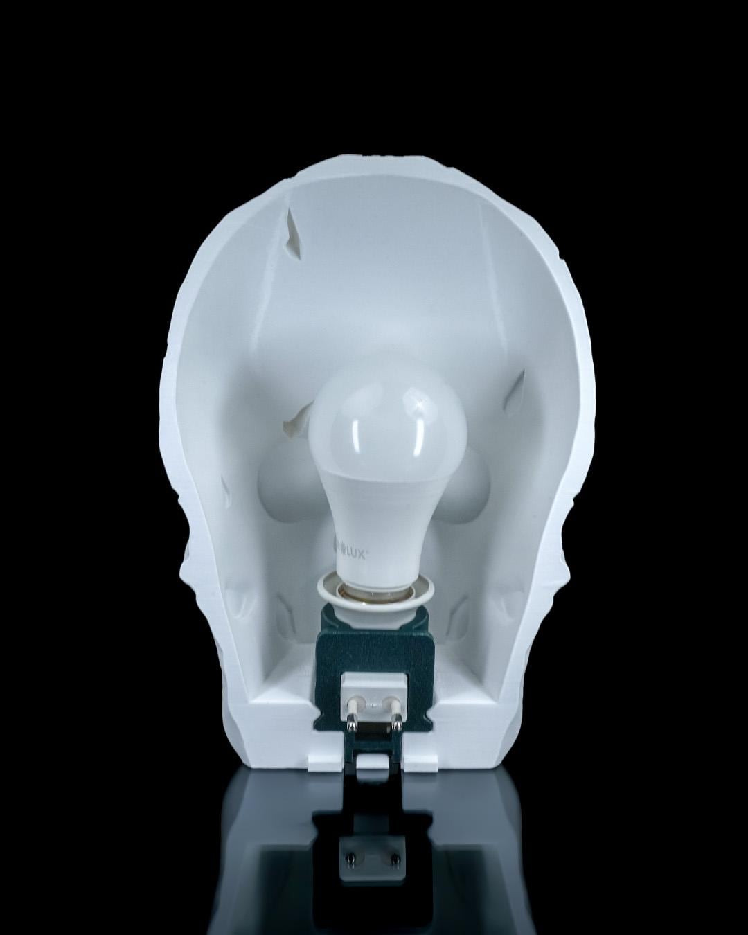 Bring eerie illumination to your space with the Light Headed Wall Light, a handmade plug-in skull sculpture that glows with warm, ambient light. Each unit is fully assembled and ready to use — just plug it into a wall outlet and insert your own standard E27 LED bulb to enjoy the haunting glow. The piece is 3D printed in durable PETG filament and hand-finished for a smooth, bone-like texture that diffuses light beautifully. Designed as a decorative night light, it adds a striking gothic accent to any room or Halloween display. 💀 Details: Handmade 3D printed plug-in skull light Delivered fully assembled – no setup required Compatible with standard E27 LED bulbs Soft, warm ambient glow for moody lighting Crafted from durable, heat-resistant PETG Smooth matte white finish for realistic skull effect 📏 Approximate dimensions: Height: 9.6 in Width: 6.3 in Depth: 7.1 in Weight: ~0.77 lb 🎨 Finish: Matte White (translucent diffusion) 📦 Includes: Fully assembled skull light with integrated plug-in support 💀 Plug-In Skull Light: Arrives ready to use – simply add your LED bulb 🖐️ Handmade 3D Print: Durable PETG with smooth matte finish 🌕 Ambient Glow: Creates a spooky, cozy atmosphere ⚡ Standard Fitting: Works with E27 LED bulbs (not included) 🎃 Gothic Home Accent: Perfect for Halloween or year-round décor