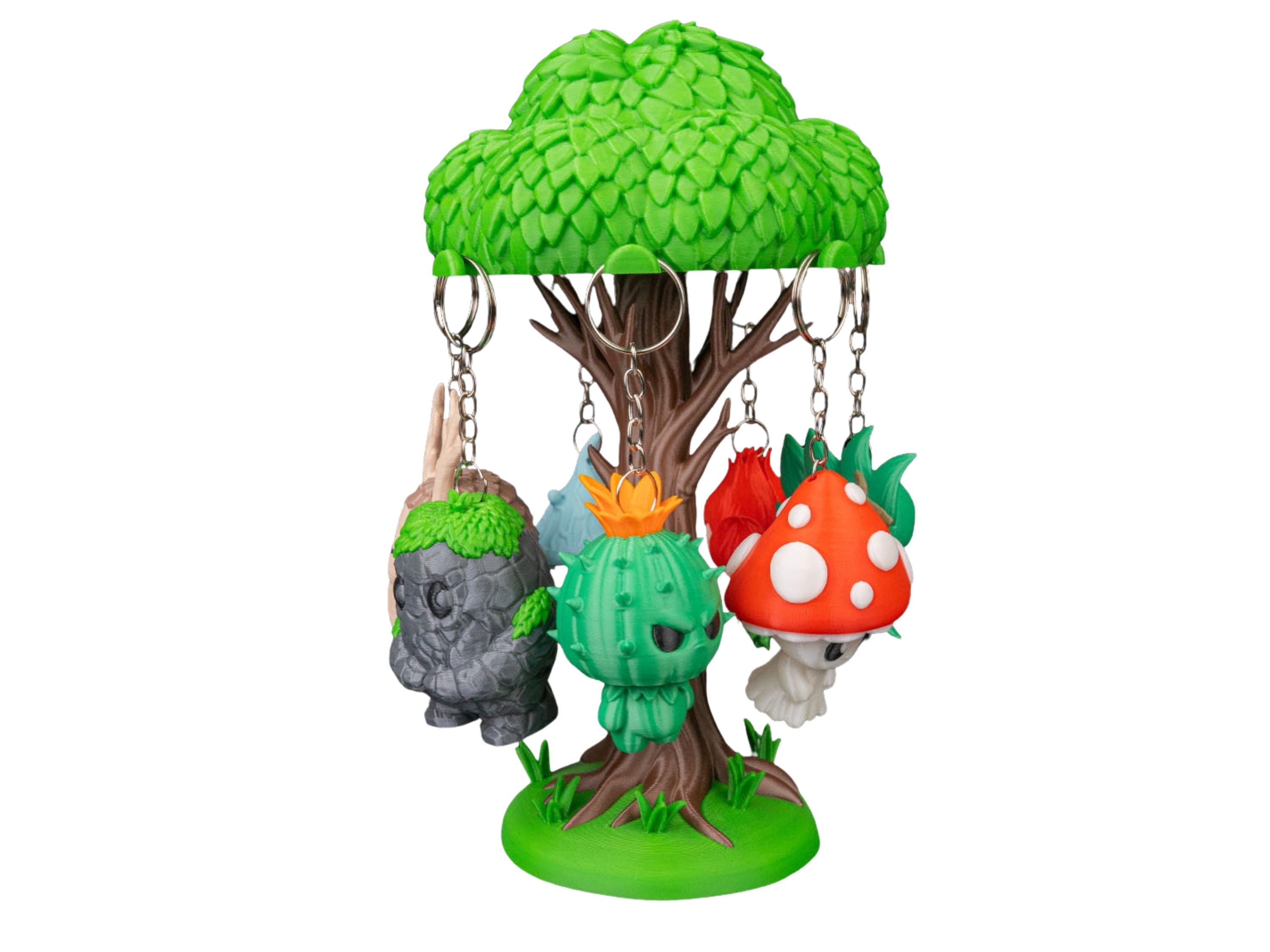 The Spirit Tree Display with 7 Spirit Keychains – 3D Printed Nature-Inspired Tree Decor – Handmade Desk & Shelf Display