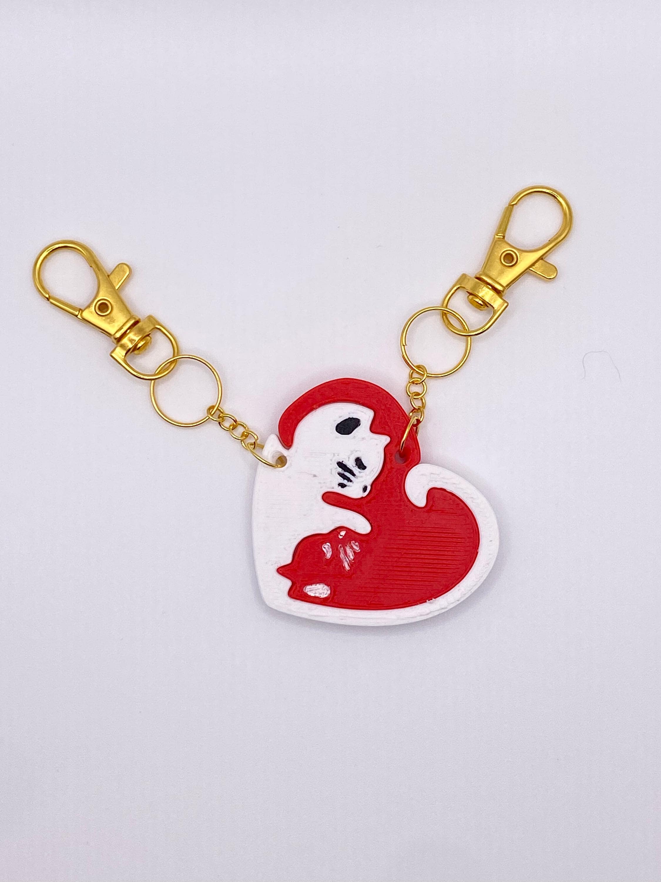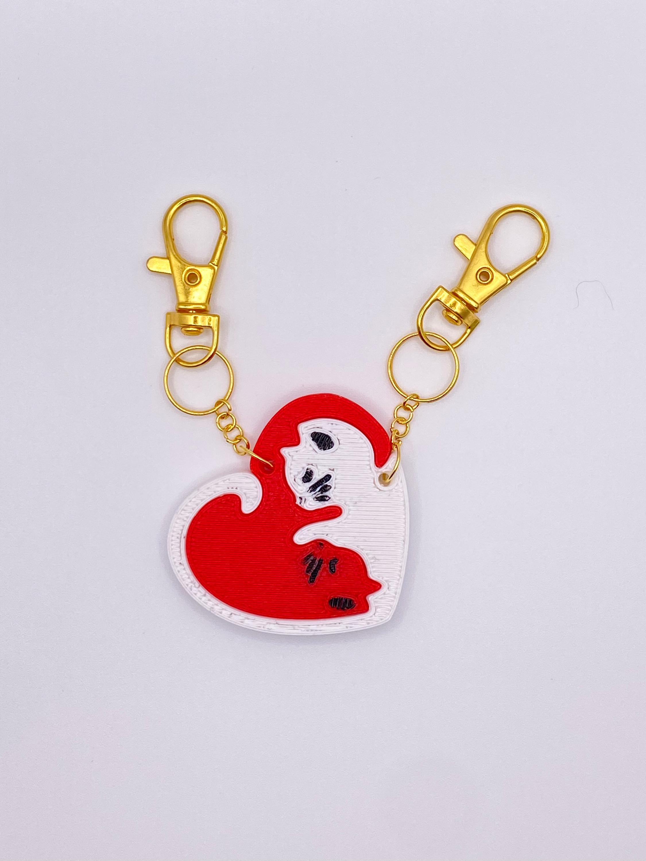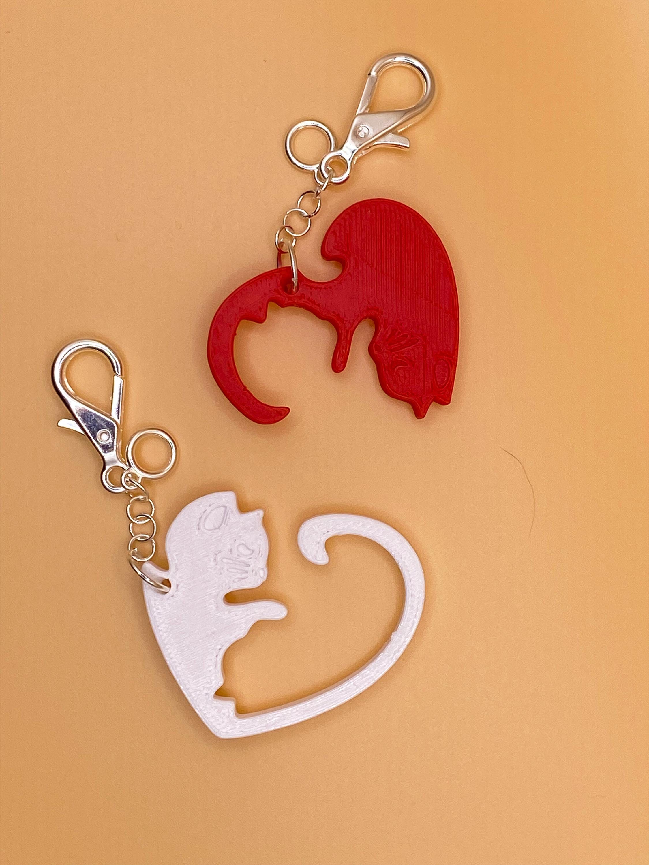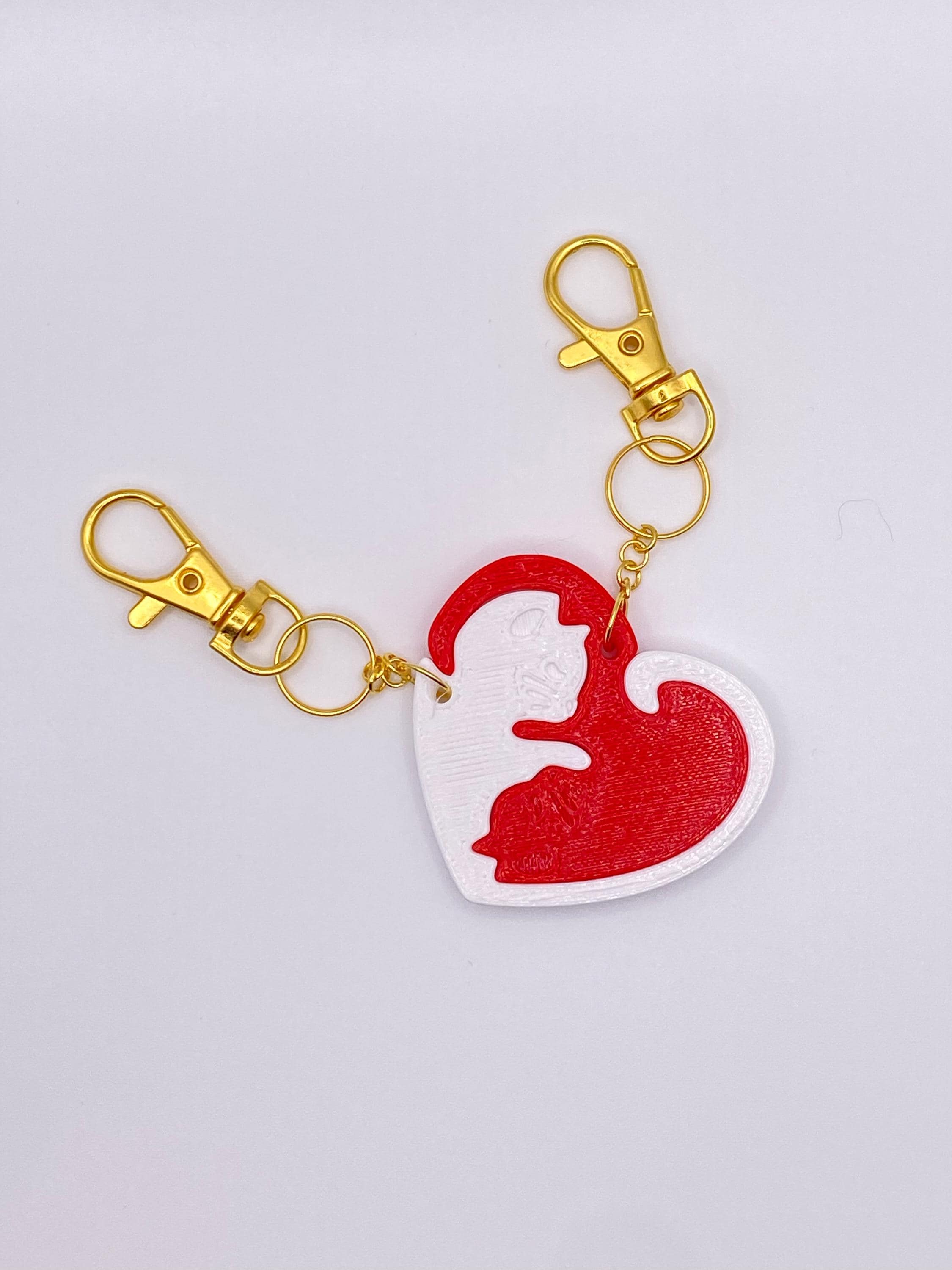 Celebrate your love with this adorable 3D-printed cat keychain set! 🐾 Perfect for couples, this heart-shaped keychain features two cats forming a loving embrace—one red and one white—symbolizing connection and affection. 🖐️ Handmade from durable PETG plastic 🎁 Ideal gift for Valentine's Day, anniversaries, or just because 🐱 Unique design for cat lovers and romantic souls 🔗 Each set includes two separate keychains that form a heart when placed together 🎨 Color: Red & White (Unpainted), with gold or silver chain depending on variation This charming keychain is lightweight and perfect for backpacks, keys, or bags. Surprise your partner with a gift that says "I love you" in the most purr-fect way.
